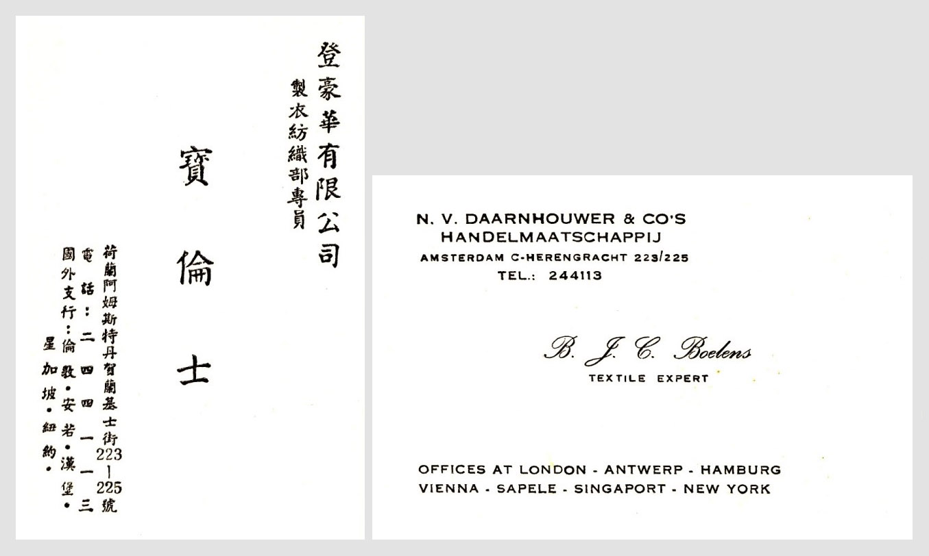 In 1964 ontstond het eerste contact met Daarnhouwer & Co.’s Handelmaatschappij aan de Herengracht 223-225 in Amsterdam. Deze relatie zou een volledig nieuwe fase inluiden in de geschiedenis van het bedrijf. Daarnhouwer is een bedrijf dat kan bogen op een lange traditie als importeur vanuit het Verre Oosten. In die tijd had men kantoren in Londen, Antwerpen, Hamburg, Wenen, Sapele, Singapore en New York. Van oudsher importeerde men al koffie, thee, rubber, cacao e.d. uit voormalig Nederlands-Indië en andere landen in die regio, maar nu wilde men ook gaan beginnen met het opzetten van textiel-import. Het was een markt die sterk in opkomst was. In het Verre Oosten konden textielproducten veel goedkoper gemaakt worden dan in Europa. Daarnhouwer had de heer Stütterheim aangesteld om deze nieuwe poot van het bedrijf te gaan leiden. Doordat Boelens in genoemd jaar een kleine order plaatste bij Daarnhouwer, kwam men in contact. Het Amsterdamse bedrijf had wel ervaring met handel drijven in het Verre Oosten, maar niet veel kennis van de textielbranche. Zo ontstond het idee om Ben Boelens te vragen met de heer Stütterheim mee te gaan naar het Verre Oosten. Als deskundige kon hij beter beoordelen wat voor textielproducten men daar moest laten maken en hoeveel. Hij beoordeelde de kwaliteit, de dessins en de afwerking.