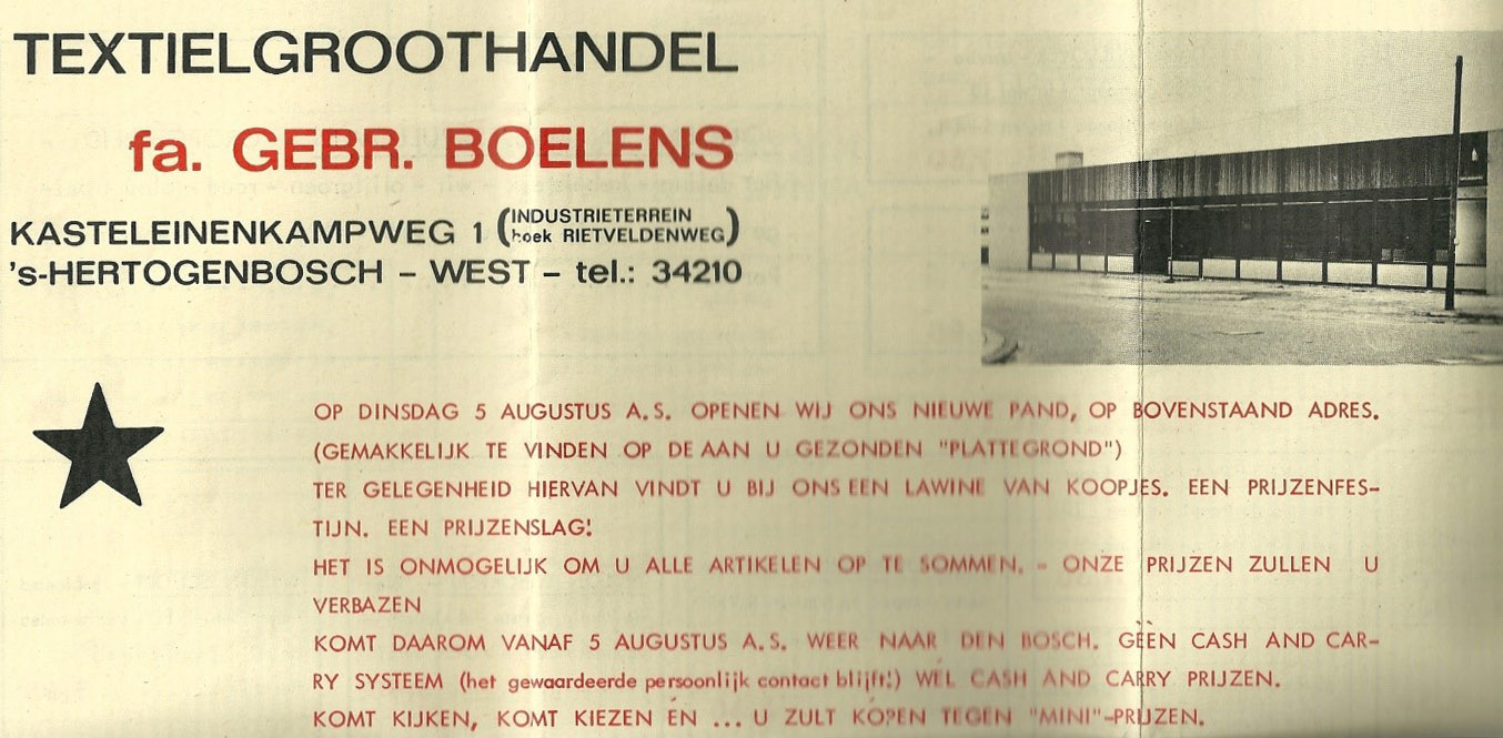 ![body=[]](documenten/textielgroothandel firma gebr. boelens/16.jpg) Fragment folder opening augustus 1969 Kasteleinenkampweg/hoek Rietveldenweg.