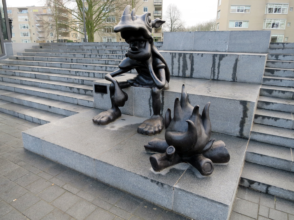 Het beeld staat op de trappen bij de in- en uitgang van de parkeergarage St-Jan.