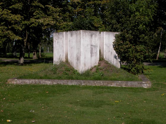Op de groenstrook tussen de Zuiderparkweg en de Wagnerlaan.afmetingen: (hoekelementen) 110 (2x) x 30 x 225; (betonrand) 30 x 30; (voerkant) 600 x 600 cmmateriaal: wit geschilderd beton, zand datering: 1983 vervaardigd door: Herman Morren (gesigneerd Herman Morren 1983) Vier witte hoekelementen van beton geplaatst op een zandheuvel op een onderlinge afstand van 30 cm met daar omheen een vierkante betonnen rand. De hoekelementen zijn ten opzichte van de betonnen buitenrand 45 graden gedraaid. De ruimte tussen de hoeken is 30 cm. Op een plaquette staat de tekst 'Mens contra natuur': het monument wordt in de zomer gedeeltelijk overwoekerd door onkruid. Het kunstwerk was gemaakt in het kader van de B.K.R. in de gemeente Berlicum en bedoeld voor het park aldaar. Uiteindelijk werd afgezien van plaatsing en werd het kunstwerk aangeboden aan de gemeente 's-Hertogenbosch, die het in 1986 aan de Zuiderparkweg liet plaatsen. | 97 |