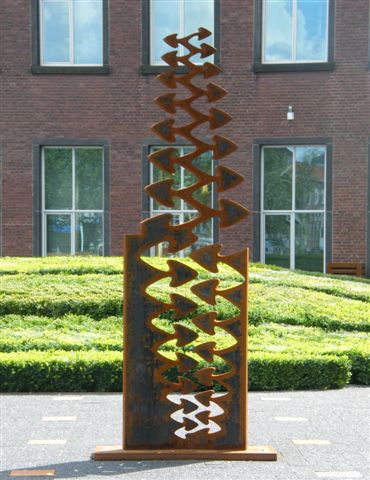 Een sluitend patroon van positieve en negatieve tekens; deze tekens worden door het Digul-volk uit Nieuw Guinea toegepast op hun schilden.