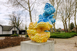 Kleurrijk kunstwerk Dinzalun het gesprek van de dag in NulandHet opvallende blauw-gele kunstwerk Dinzalun zorgt voor gespreksstof in Nuland. ‘Ik moet er nog eens een keer omheen lopen.’