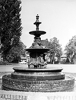 Hekellaan, op Bastion Baselaarafmetingen: (bassin) 265 x 45 cm; (segment) hoogte 110 cmmateriaal: hardsteen datering: vermoedelijk negentiende eeuw Deze stond oorspronkelijk in de tuin van Wolvenhoek 10 (waar nu een parkeergarage is). De firma die de panden nummers 10 en 12 kocht bood de fontein in 1931 aan aan het gemeentebestuur. De gemeente besloot de hardstenen, uit drie segmenten en een bassin bestaande fontein in het plantsoen 'de wandeling' aan de Hekellaan te plaatsen. Bij deze gelegenheid werd de fontein nog in een groter bassin geplaatst van baksteen en beton (doorsnede 755 cm, hoogte omringend muurtje 58 cm). Het plantsoen was tussen 1880 en 1890 -na het slechten van de stadswallen- aangelegd door de tuinarchitect J.M. Maréchal. Van het plantsoen en van de fontein is nu weinig meer over (functioneren deed de laatste allang niet meer). Slechts het bassin en een segment resten ons nog. Hierop zijn nog enige classicistische versierselen te zien als maskers, loofwerk en lauwerkransen. In 1987 is het bassin opgesierd met een nieuw kunstwerk. | 27 |