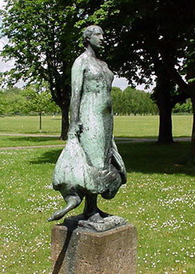 'Vrouw met Ganzen' van Auke Hettema door de firma Bos en Kalis. Gegoten bij Binder en Schmidt te Haarlem in 1959. |