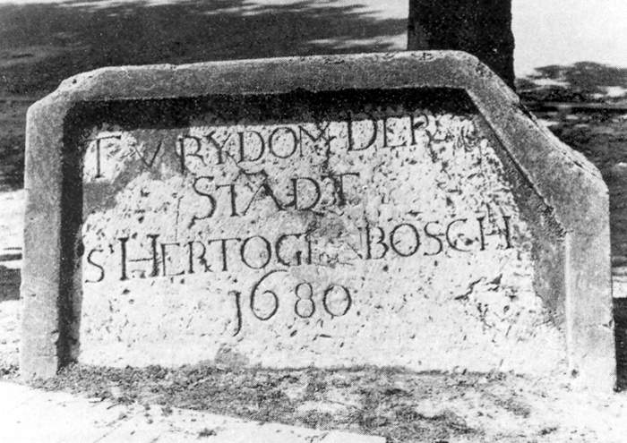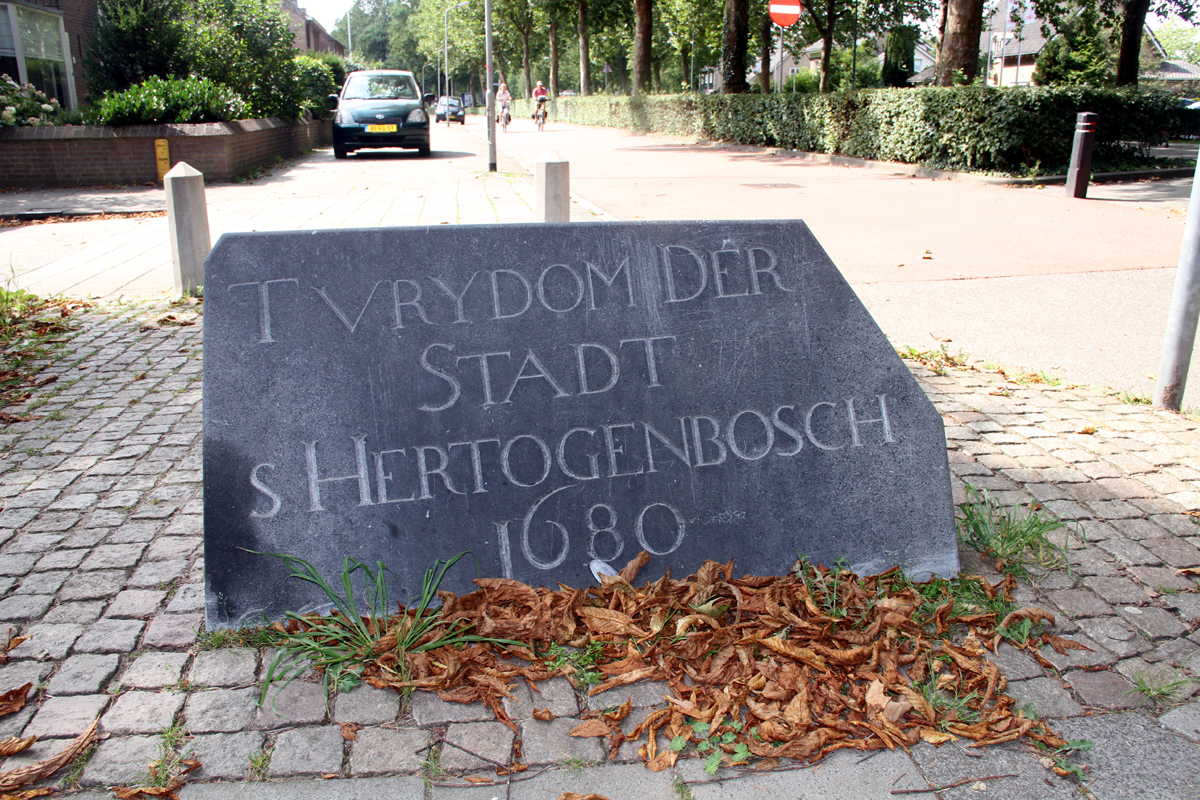 Op de grens van Rosmalen en 's-Hertogenbosch, op de hoek van de Jasmijnstraat en de Graafseweg, een hardstenen grenssteen met in een uitgediept veld het opschrift in kapitalen: VRYDOM DER STADT s'HERTOGENBOSCH 1680. |