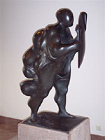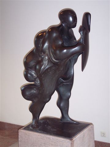 De H. Donatus is hier in gestileerde, glooiende en gladde vormen voorgesteld als een krijgshaftige, vooruitsnellende figuur met geheven schild in de linkerhand. Het gezicht en de vingers zijn lineair aangegeven. Het geheel vertoont futuristische stijlkenmerken. De H. Donatus was de beschermheilige tegen natuurrampen als blikseminslag. Het initiatief voor plaatsing van het beeld ging uit van de toenmalige direkteur van de maatschappij, ter gelegenheid van het 125-jarig bestaan (1852-1977).150 | 86 |