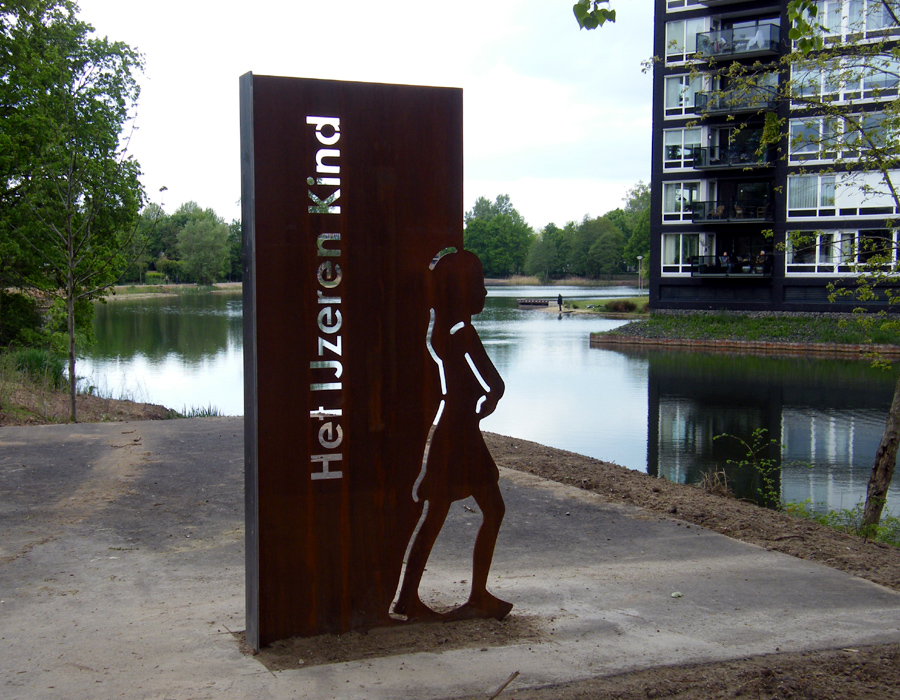 ‘IJzeren Kinderen’ geplaatst bij plasDEN BOSCH – Meisjes gemaakt van staal. Alsof het gaat over twee heel sterke meiden. Maar het zijn twee beelden aan de plas het IJzeren Kind in Hintham. Trouw aan de naam geven de stalen beelden een kind weer. Bij de Vincent van Goghlaan en de Jan Heijmanslaan staan ze. Sinds het begin van dit jaar wordt het gebied rondom de plas opnieuw ingericht. Al eerder werden een nieuwe brug aan de Vincent van Goghlaan en asfaltpaden langs het water aangelegd.