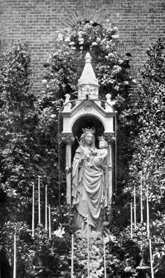 Afgelopen zondag was het weer moederdag. Op deze dag trok weer een plechtige bidtocht met de Zoete Moeder van 's-Hertogenbosch langs de aloude beeweg. Onder de vele Mariabeeldjes die men onderweg passeerde, bevond zich ook nu weer het Mariabeeld in de Lepelstraat. Toen in 1825 de heren Frijhoff en Pompe een pand in de Lepelstraat kochten voor hun distilleerderij, vonden zij onder het vuil bedolven een groot stenen Mariabeeld. Het hoofd van het Jezuskindje ontbrak (en is bij een latere restauratie toegevoegd). Het Mariabeeld werd op de binnenplaats gezet, waar het door de Bosschenaren wel gezien kon worden, doch men besteedde er nog geen speciale aandacht aan.