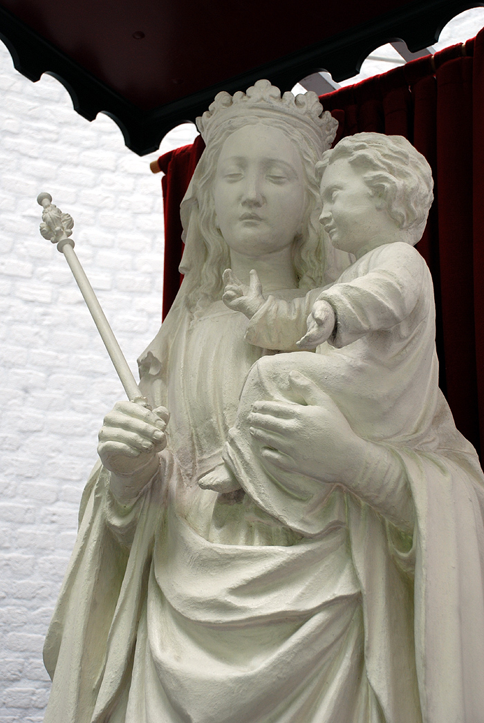 Visstraat, in een nis, ter hoogte van de Lepelstraatafmetingen: 58 x 160 cmmateriaal: steen Beeld van een staande H. Maria met Jezus op de arm. De houding van de figuur en de plooival doen laat gotisch aan. Het beeld werd in 1825 gevonden in de schuur van een pand in de Lepelstraat, onder het stof en vuil. Het hoofd van Jezus ontbrak en is er bij een latere restauratie aan toegevoegd. Het beeld werd op de binnenplaats gezet en sindsdien maakt het deel uit van de aloude 'beeweg' (De Stille Omgang). Van de herkomst van het beeld is niets bekend.8 Het beeld werd beschadigd tijdens de Tweede Wereldoorlog en gerestaureerd door Jacques de Bresser. In 1977 werd het nogmaals gerestaureerd door George Piretti nadat het door vandalen was vernield. De plaats in de nis in de Lepelstraat is tijdelijk. Als de nieuwe gebouwen op de oorspronkelijke plaats en het nieuwe kapelletje voltooid zijn, verhuist het beeld weer naar de Lepelstraat. | 14 |