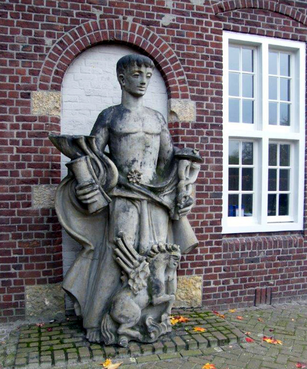 Origineel stond dit beeld op de voorgevel van het oude stationsgebouw, waarna het geplaatst werd naar de binnentuin van Koning Willem I College aan de Vlijmenseweg.