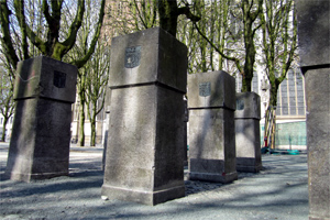 Bij het herinrichten van de Parade zijn de paaltjes gegroepeerd geplaatst in de buurt van de plebanie. De bronzen inzetten stellen het wapen van ’s-Hertogenbosch en dat de Sint-Janskathedraal voor.