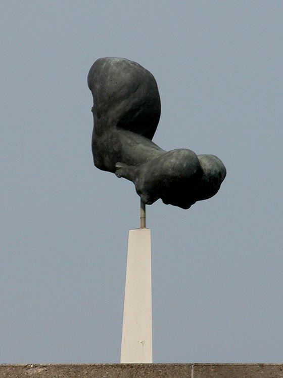 Provinciehuis, Brabantlaan 1, terras kantineafmetingen: 160 x 100 x 180 cm (sokkel hoogte 350 cm)materiaal: brons op een grijs betonnen sokkel datering: 1971 vervaardigd door: Arthur Spronken Een sterk geabstraheerde paardetors op een hoge, driekantige (50 x 50 x 50), doch taps toelopende betonnen sokkel, staande op het terras van de eerste verdieping. Het is geplaatst in het kader van de percentage-regeling met een eigen bijdrage van de provincie. | 82 |