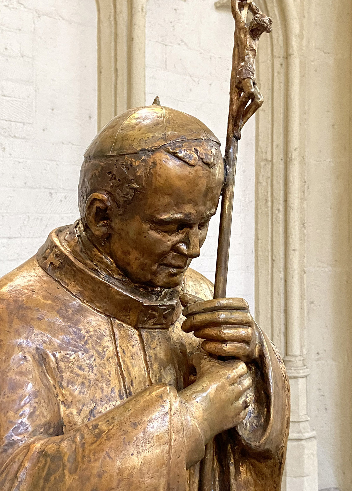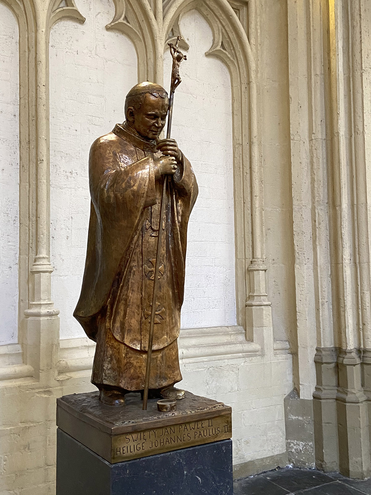 DEN BOSCH - Een kille ontvangst was er 35 jaar geleden voor paus Johannes Paulus II in Den Bosch. De heilig verklaarde paus krijgt nu in de Sint-Jan een bronzen beeld. Mét een druppeltje bloed erbij.