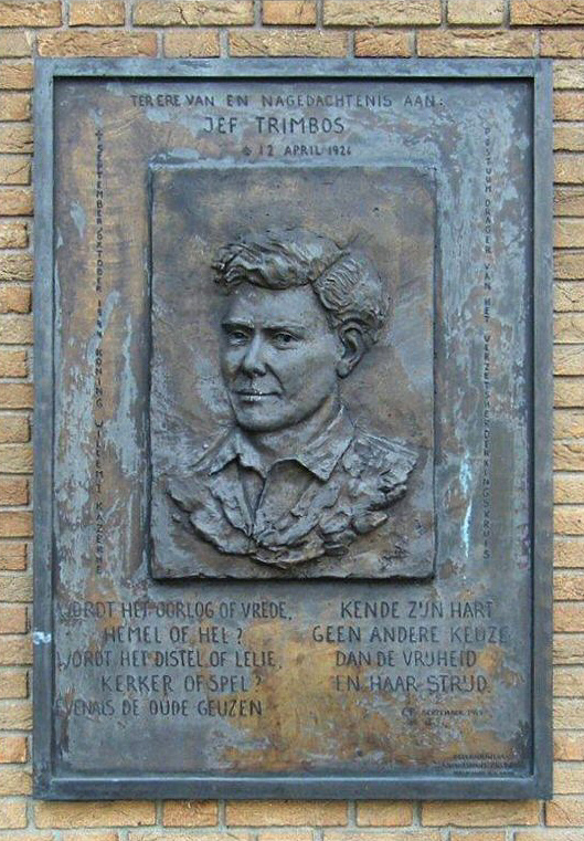 Triest is het verhaal van de 18-jarige Jef Trimbos. Na de zomervakantie 1944 keert hij niet terug naar het Sint-Janslyceum. Voor de OD doet hij koerierswerk en begeleidt onderduikers en piloten naar de Belgische grens. Als hij een onderduiker naar Vlijmen brengt, wordt hij aangehouden op Deuteren en naar de Nutsschool aan de Van der Does de Willeboissingel gebracht. Later verhoort de SS hem in de villa van De Gruyter, maar hij slaat niet door. Het laatste ziet men hem levend op de Koningsweg bij het PNEM-gebouw, als hij onder gewapend geleide wordt weggevoerd. Na de oorlog worden op het terrein van de Willem-I kazerne de stoffelijke resten van twee personen gevonden. Eén van hen blijkt na identificatie Jef Trimbos te zijn. Op 26 februari 1949 wordt hij met militaire eer begraven op de Erebegraafplaats te Orthen. | 19 |