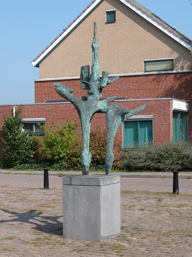 Betonnen sokkel 92 x 66 x 64 cm. Bronzen beeld 236 x 210 x 103 cm.
