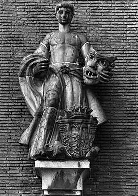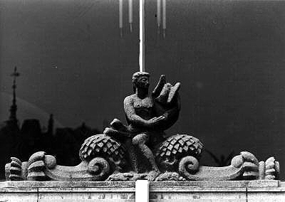 Station van de Nederlandse Spoorwegen. Stationspleinafmetingen: (linkerfiguur) 150 x 320 cm; (linkerbeeldje) 175 x 75 cm; (rechterbeeldje) 175 x 75 cm; (rechterfiguur) 150 x 320 cmmateriaal: natuursteen datering: 1952 vervaardigd door: Jo Uiterwaal Het grote beeld links is Mercurius met Pegasus: een mannelijk figuur en een paard. Het grote beeld rechts stelt Carnaval voor: een mannelijke figuur met een masker in de hand en wapensteen aan de voeten. Beide mannelijke figuren hebben een hiëratische uitdrukking op het gezicht en zijn gekleed in een soort tunica met gestileerde plooien. De kleine beeldjes boven de ingangen zijn (links) Neptunus op gestileerde golven en met een drietand in de hand en (rechts) een zittende jongen met Phoenix met links en rechts gestileerde bomen en wolken. De figuur van Neptunus en ook de zittende jongen zijn wat stijf en weinig gedetailleerd. Jo Uiterwaal heeft veel gewerkt voor N.S.-stations in het zuiden van het land, in samenwerking met architect S. van Ravestijn.101 | 59 |