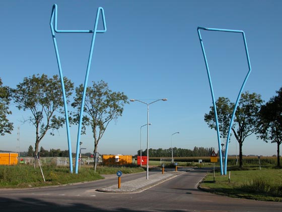Twee ijle vlinders, hun vleugels hoog gesloten markeren als een klassieke poort de overgang van het oude deel van Rosmalen naar het nieuwe, de Overlaet en vice versa. De toren van de Lambertuskerk, de grote boom op de Augustinessenborch en de Vlinders zijn de drie verticale accenten op de as naar het centrum van de Overlaet.