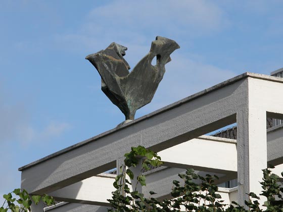 Lagere Technische School, Sportlaan 1, boven de ingangafmetingen: 160 x 120 x 200 cmmateriaal: brons datering: 1954 vervaardigd door: Marius van Beek Deze geabstraheerde vogel is in een hoekige stijl met grote vlakken, bedoeld als symbool van de uitvliegende jeugd, is destijds bij de bouw van de school in het kader van de percentage-regeling geplaatst.111 | 62 |