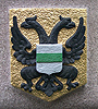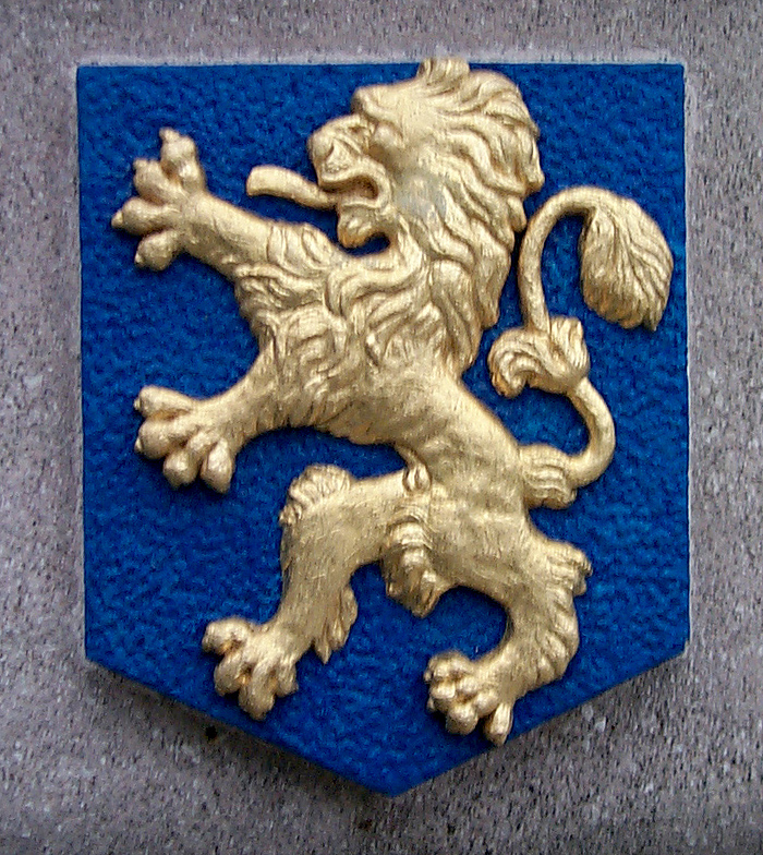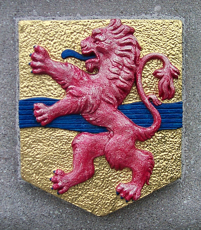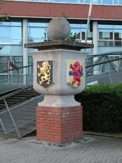 Rechthoekige vaasvorm met bol (voor het gebouw naast het busterrein). Stond op de rechter geveltop van het voormalig station. Zuidzijde: Provincie Overijsel, Oostzijde: blauwe klimmende leeuw (betekenis onbekend), Noordzijde: Stadswapen Groningen.