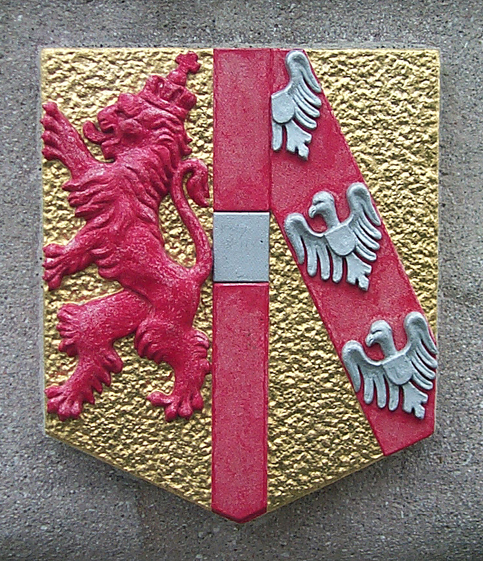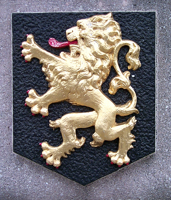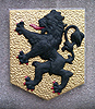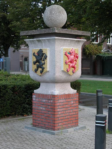 Rechthoekige vaasvorm met bol (voor het gebouw naast het busterrein). Stond op de linker geveltop van het voormalig station. Zuidzijde: Oostenrijk, Oostzijde: gouden klimmende leeuw (Stad Leeuwarden?), Noordzijde: rode klimmende leeuw (betekenis onbekend)