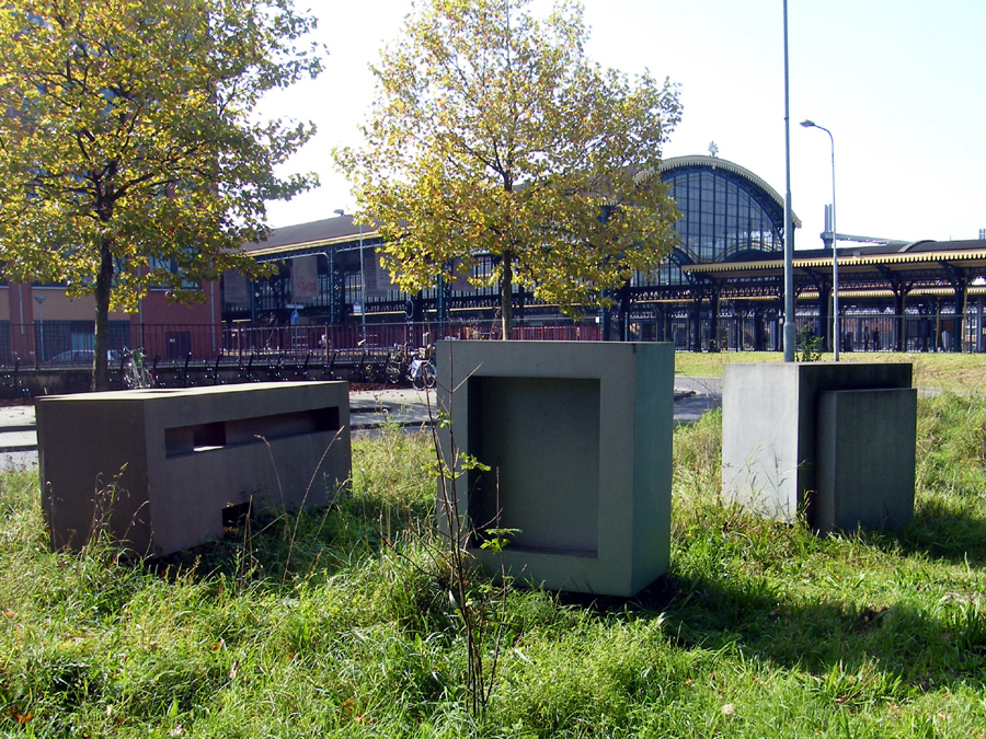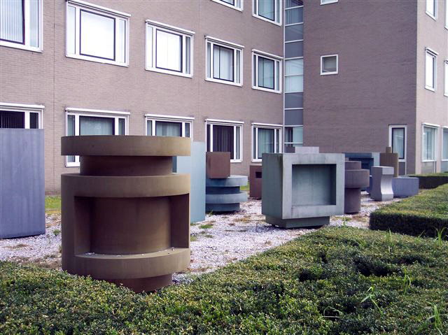 Stonden oorspronkelijk bij het kantoor van de Belastingdienst aan de Kooikersweg, later verplaatst naar de Boschveldweg.
