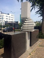 Drie blokken marmer, twee zwarte blokken en een wit. Op het middelste witte blok een stapeling van acht tegelvormige platen die gedraaid t.o.v. elkaar liggen. Daarboven op een prismavormig blok van wit marmer. De abstracte sculptuur is een expressie van het modulair onderwijs: laag op laag stapelen. In dit gebouw was toen nl. een onderwijsorganisatie, Cibb later Cinop, gevestigd. Zij gaf ook de opdracht aan kunstenaar Harry van Kuyk (1929-2008) voor dit object. Van Kuyk is niet specifiek beeldhouwer. Hij genoot vooral bekendheid als graficus. Hij ontwikkelde het procedé van reliëfdruk en maakte daarnaast zeefdrukken en etsen. |