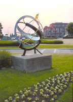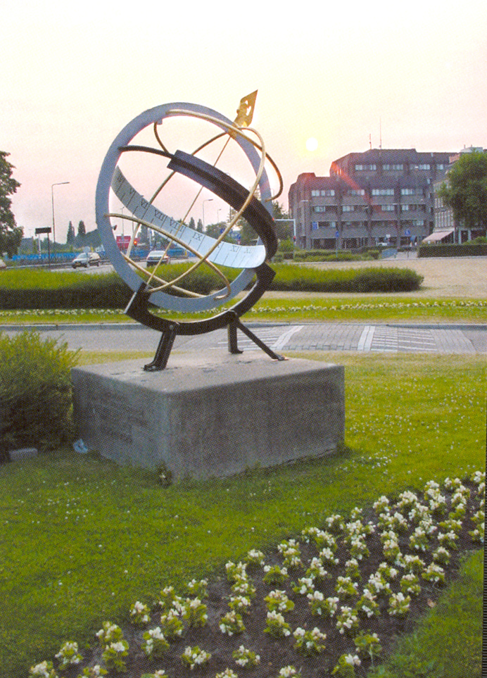Wilhelminaplein nabij de Vughterstraatafmetingen: hoogte ca 150 cmmateriaal: metaal, zwart gespoten en deels verguld datering: 1935 Deze monumentale zonnewijzer werd in 1935 aan de gemeente 's-Hertogenbosch geschonken door Oud-Bosschenaren, als een gedenkteken van het 750-jarig stadsjubileum. De zonnewijzer werd in het Wilhelminapark geplaatst (sind 1970 getransformeerd in het Wilhelminaplein). | 43 |
