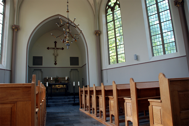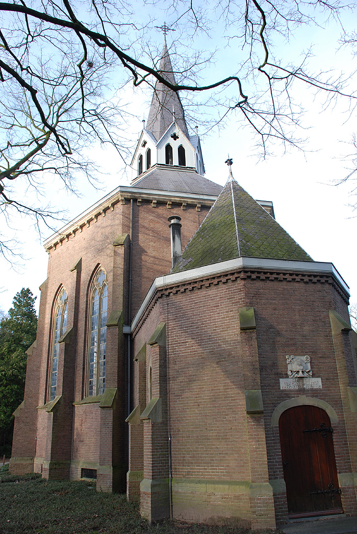 InleidingBisschopskapel, in 1882 opgetrokken in Neo-Gotische vormen naar plannen van de Bossche architect L.C. Hezenmans. Het gebouw, dat in eerste instantie moest dienen als begraafplaats voor de in 1877 overleden bisschop J. Zwijsen, werd gefinancierd door de door Zwijsen gestichte congregaties van de Zusters van Liefde en de Fraters van Tilburg en het bisdom 's-Hertogenbosch. De kapel is gelegen in het noordwestelijke deel van de begraafplaats aan het einde van de Mgr. Zwijsenlaan, die in een rechte lijn vanaf de hoofdingang aan de Fort Orthenlaan loopt. Onder de kapel bevindt zich de crypte van de bisschoppen van 's-Hertogenbosch. De crypte is toegankelijk via de uitbouw aan de achterzijde. De kapel werd in 1978 en 1994 gerestaureerd.OmschrijvingKapel op zeskante grondslag met muren van machinale baksteen in schoon metselwerk in kruisverband. Het voegwerk is geknipt en gesneden. De kapel heeft een schilddak met leien in Maasdekking en wordt bekroond door een zeskante, eveneens met leien gedekte, dakruiter. Aan zowel de voor- als de achterzijde bevindt zich een éénlaagse uitbouw met muren in schoon metselwerk onder een zadeldak met leien. De kapel heeft aan alle zijden zich twee maal verjongende gemetselde steunberen.De detaillering van de hoofdmassa van de kapel is uitgewerkt in zandsteen in onder andere lijsten, plint, afdekstenen, waterlijsten, venstertraceringen, afzaten, goot en klossen. Aan de zijkanten van de kapel bevinden zich, net boven de grond enkele ventilatie-openingen die met ijzeren roosters zijn afgezet. De uitbouw aan de noordzijde dient als ingang. De entree heeft een korfboog met een dubbele opgeklampte houten deur met smeedijzeren beslag. De ingang heeft een zandstenen omlijsting die overgaat in een spitsboog met gotiserend maaswerk. Boven de ingang is onder een uitkragend baldakijn een beeld van de wederopgestane Christus geplaatst; het beeld rust op een gebeeldhouwde console in de vorm van een engelenfiguur met jaartalschild in de handen. Op de daknok bevindt zich een grote dakruiter met hoog opgaande spits, bekroond met een siersmeedijzeren kruis. De galmborden zijn van hout en elk voorzien van twee lancetvensters met een vierpas daarboven. Het interieur van de kapel is sober in detaillering. Via een met een kruisribgewelf overwelfde rechthoekige voorhal komt men in de centrale ruimte. Deze is overwelfd met een zesdelig kruisribgewelf waarvan de ribben in een centrale cirkel bijeenkomen. De gewelfribben rusten op colonetten met hardstenen basementen en polychrome bladkapitelen. De zone onder de hoge vensters is niet geornamenteerd. Het koor van de kapel is iets verhoogd ten opzichte van de centrale ruimte en heeft een trap met drie treden. Aan de achterzijde, in de uitbouw, bevinden zich nog enkele kleine nevenruimtes die voornamelijk voor opslag dienen. Het kerkmeubilair is niet meer authentiek. In het entreegedeelte is in de vloer een grote gedenksteen geplaatst met daarin de namen en wapenschilden van de alhier begraven bisschoppen van 's-Hertogenbosch. Onder de kapel bevindt zich de crypte met de stoffelijke resten van de bisschoppen en prelaten van 's-Hertogenbosch. Deze is toegankelijk via de rechthoekige uitbouw aan de achterzijde met driezijdige sluiting. De uitbouw heeft muren in schoon metselwerk van in kruisverband gemetselde machinale baksteen, een schilddak met geschubde leien en aan elke zijde twee gekoppelde spitsboogvensters met zandstenen omlijsting. De ingang heeft een korfboog met opgeklampte deur met smeedijzeren sierbeslag. Boven deze ingang bevinden zich een wapensteen en een steen met het opschrift "grafstede van onze overleden bisschoppen en priesters". Via een tweedelige hardstenen trap komt men in de onder de kapel gelegen rechthoekige crypte. De vloer hiervan is belegd met plavuizen. De crypte is overwelfd met gemetselde troggewelfjes op ijzeren I-balken. Elk van de zijwanden is opgebouwd uit 48, met een segmentboog getoogde, gemetselde nissen waar de kisten der overledenen in kunnen worden bijgezet. De nissen zijn dichtgezet met natuurstenen platen en hebben zandstenen hoekblokken. Enkele van de bovenste nissen hebben een rooster met gaten en dienen als ventilatieopeningen. De achterwand telt twaalf nissen die gelijk zijn aan die van de zijwanden. In deze wand zijn de bisschoppen van 's-Hertogenbosch tot Mgr. Mutsaerts (+ 1964) bijgezet. In de zijwanden bevinden zich voornamelijk de resten van lagere kerkelijke hoogwaardigheidsbekleders. Rechts voor de kapel bevindt zich een houten paal waaraan het zogenoemde "eeuwig licht" is bevestigd. Dit is een met punten beveiligde smeedijzeren olielamp met contragewicht. De lamp dateert nog uit de bouwtijd van de kapel. WaarderingDe kapel is van algemeen belang. De kapel heeft cultuurhistorische waarde als bijzondere uitdrukking van een sociale en geestelijke ontwikkeling, in het bijzonder de ontwikkeling van de katholieke grafcultuur. De kapel heeft historisch belang als laatste rustplaats van de Bossche bisschoppen. De kapel heeft architectuurhistorisch belang vanwege de plaats in het werk van de beeldhouwer/architect L.C. Hezenmans die onder meer verantwoordelijk was voor de uitvoering van de restauratie van de Sint Jan en vanwege de toegepaste neogotische vormentaal. De kapel heeft ensemblewaarden als onderdeel van een groter geheel met cultuurhistorische, architectuurhistorische en typologische samenhang. De kapel is gaaf bewaard gebleven en typologisch zeldzaam. |