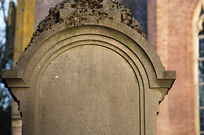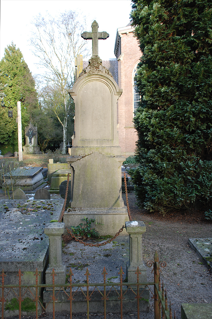 InleidingGrafmonument voor de zanger Willem Deckers (1826-1899), in 1899 opgericht in Eclectische vormen door de Bossche architect/beeldhouwers H.C. Dobbe en Van Pelt. Het grafmonument bevindt zich aan de oostelijke zijde van de bisschopskapel, sectie 24-14-01-06.OmschrijvingHet graf bestaat uit een rechthoekige grafplaat, omgeven door lage, gecanneleerde hoekpijlers die onderling met kettingen verbonden zijn. De grafplaat heeft als enige inscriptie de naam van de begravene. Aan de achterzijde hiervan bevindt zich de hoog opgaande hardstenen stèle die door een kruis bekroond wordt. Boven het basement bevindt zich een fronton met epitaaf en met gestileerde florale ornamentiek. In het met een rondboog getoogde gedeelte daarboven is een engel met bazuin en palmtak gegroefd. Bovenin staat: Willem Deckers. Verder is deels over de engel aangebracht de inscriptie: in memoriam Ridder van Oranje Nassau, lid der St. Vincentiusvereniging. De epitaaf in het fronton luidt: "Hij rust en zwijgt in 't stille graf die zong in blijde en droeve dagen, bij feestgedruisch, bij 't rouwedragen en die aan god steeds eere gaf. Al boeit de dood zijn machtige stem, ten jongsten dag zal hij verrijzen en god in eeuwige liedren prijzen in 't hemelsche jerusalem".Het graf is rechtsonder op de stèle gesigneerd. WaarderingHet grafmonument is van algemeen belang. Het heeft cultuurhistorische waarde als bijzondere uitdrukking van een sociale en geestelijke ontwikkeling, in het bijzonder de ontwikkeling van de katholieke grafcultuur, het is tevens van belang als illustratie van de typologische ontwikkeling van het grafmonument. Het graf is van belang vanwege de plaats die de sculptuur inneemt binnen het oeuvre van de Bossche architect/beeldhouwers H.C. Dobbe en Van Pelt. Het graf heeft kunsthistorisch belang vanwege de toegepaste eclectische vormgeving. Het graf heeft ensemblewaarden als onderdeel van een groter geheel met cultuurhistorische, architectuurhistorische en typologische samenhang. Het is gaaf bewaard gebleven en typologisch zeldzaam. |