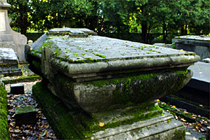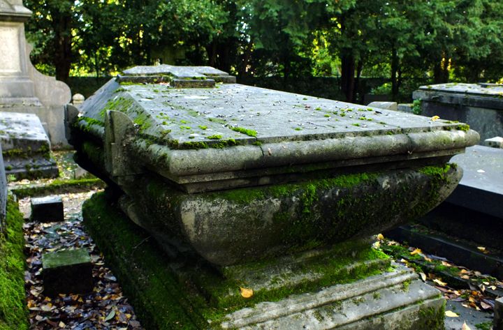 InleidingGrafmonument voor F.G. van Goch (1831-1894) en diens vrouw Cath. van Orimond (1837-1896). Het sobere grafmonument is in 1894 in Eclectische vormen opgericht en bevindt zich aan de linkerzijde van de bisschopskapel in sectie 21-11-01-08.OmschrijvingHet hardstenen grafmonument bestaat uit een sarcofaag die omgeven wordt door hardstenen voetplaten waarop zes lage stenen paaltjes geplaatst zijn. De sarcofaag bevindt zich op een geprofileerd basement en rust op vier gecanneleerde, voluutvormige steunklemmen die tevens de deksel aan de randen omsluiten. De klemmen zijn geornamenteerd met een gestileerd bloemmotief. De sarcofaagdeksel loopt aan alle zijden schuin af. Bovenop is een breed, ongeornamenteerd stenen kruis gelegd.WaarderingHet grafmonument is van algemeen belang. Het heeft cultuurhistorische waarde als bijzondere uitdrukking van een sociale en geestelijke ontwikkeling, in het bijzonder de ontwikkeling van de katholieke grafcultuur, het is tevens van belang als illustratie van de typologische ontwikkeling van het grafmonument. Het graf heeft ensemblewaarden als onderdeel van een groter geheel met cultuurhistorische, architectuurhistorische en typologische samenhang. Het is gaaf bewaard gebleven en typologisch zeldzaam. |