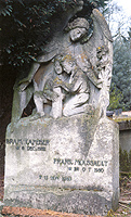 InleidingGrafmonument voor Bram Lafeber (1932-1944) en Frans Moussau(l)t (1930-1944), in 1944-1945 in een Realistische stijl vervaardigd door de Bossche beeldhouwer Piet Verdonk (1901-1968). Beide jongens kwamen op 11 november 1944 om het leven toen een granaat die zij gevonden hadden, explodeerde. Het graf bevindt zich iets ten zuidwesten van het lijkenhuisje (onderdeel II) in sectie 19-03-07-12.OmschrijvingHet graf zelf is omlijst met losliggende blokken kalksteen. Het monument bestaat uit een smalle, in oorsprong rechthoekige, kalksteen (savonnières) en heeft een kale sokkel waarop in losse bronzen letters de namen en geboorte- en sterfdata van de jongens vermeld staan. Daarboven begint de gebeeldhouwde voorstelling die het dramatische moment vlak voor de ontploffing van de granaat weergeeft. De beide jongens zitten geknield bij een granaat en onderzoeken deze. Over hen heengebogen bevindt zich een engel die de armen en vleugels om hen heen gespreid heeft om ze als het ware mee naar het paradijs te nemen. In zijn linkerhand draagt de engel een lelie. Het monument is aan de linkerzijde gesigneerd met het monogram van Piet Verdonk.WaarderingHet grafmonument is van algemeen belang. Het heeft cultuurhistorische waarde als bijzondere uitdrukking van een sociale en geestelijke ontwikkeling, in het bijzonder de ontwikkeling van de katholieke grafcultuur, het is tevens van belang als illustratie van de typologische ontwikkeling van het grafmonument. Het graf is van belang vanwege de plaats die de sculptuur inneemt binnen het oeuvre van de Bossche beeldhouwer Piet Verdonk.Het graf heeft kunsthistorisch belang vanwege de toegepaste realistische vormgeving. Het graf heeft ensemblewaarden als onderdeel van een groter geheel met cultuurhistorische, architectuurhistorische en typologische samenhang. Het is gaaf bewaard gebleven en typologisch zeldzaam. |