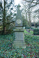 InleidingGrafmonument voor P. Jean van Paesschen (1809-1887), in 1887 naar ontwerp van J. Bolsius opgetrokken in Eclectische stijl. Van Paesschen was de organist-componist van de Sint Jan. Het monument dat zich niet meer op de oorspronkelijke locatie bevindt, is gesitueerd aan de zuidoostelijke kant van de bisschopskapel in sectie 20.OmschrijvingMonument op vierkante grondslag met een zich steeds verjongend basement en met een obelisk-achtige opbouw, bekroond met een kruis. Aan drie van de zijden bevinden zich in reliëf aangebrachte platen met aan de voorzijde het opschrift: AAN P.JEAN van PAESSCHEN * 1809 1887 ZIJNE VEREERDERS EN ZIJNE VRIENDEN. Aan de zijkanten zijn aan een stenen uitsteeksel witmarmeren lauwerkransen opgehangen. Bovenbouw met aan de voorzijde een witmarmeren portretmedaillon met daaronder een palmtak. Uitspringende gedeeltes met palmetbekroning. De signatuur bevindt zich rechtsonder aan de voorzijde.WaarderingHet grafmonument is van algemeen belang. Het heeft cultuurhistorische waarde als bijzondere uitdrukking van een sociale en geestelijke ontwikkeling, in het bijzonder de ontwikkeling van de katholieke grafcultuur, het is tevens van belang als illustratie van de typologische ontwikkeling van het grafmonument. Het graf is van belang vanwege de plaats die de sculptuur inneemt binnen het oeuvre van de Bossche beeldhouwer J. Bolsius.Het graf heeft kunsthistorisch belang vanwege de toegepaste eclectische ornamentiek. Het graf heeft ensemblewaarden als onderdeel van een groter geheel met cultuurhistorische, architectuurhistorische en typologische samenhang. Het is gaaf bewaard gebleven en typologisch zeldzaam. |