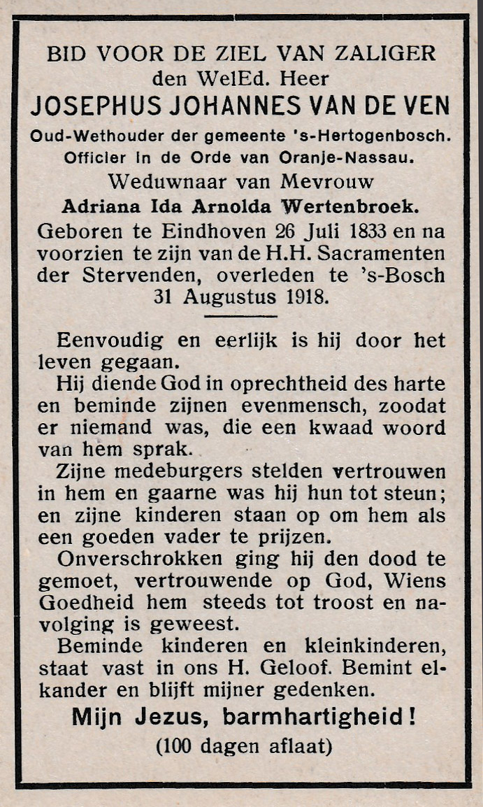 Eindhoven 26 juli 1833 - 's-Hertogenbosch 31 augustus 1918 (85)