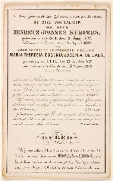Doodsprent H.J. Kuypers en M.Th.E.J. de Jaer