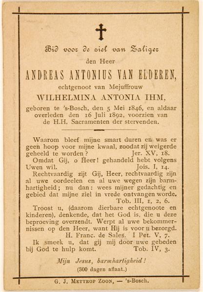 Doodsprent van Andreas Antonius van Elderen (1846-1892)