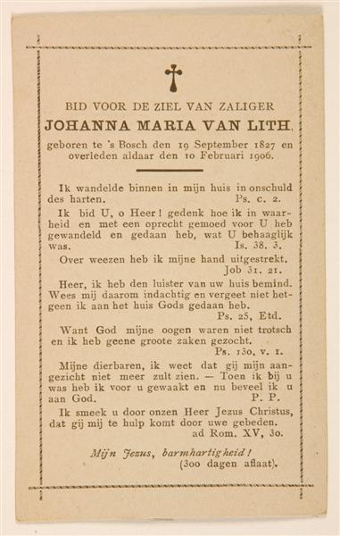 Doodsprent van Johanna Maria van Lith (1827-1906)