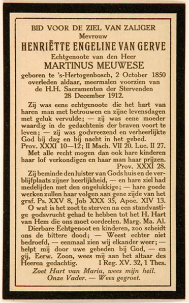 Doodsprent van Henriėtte Engeline van Gerve (1850-1912)