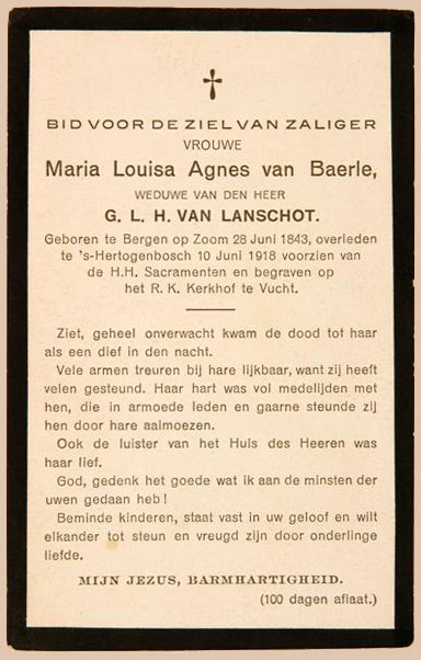 Doodsprent van Maria Louisa Agnes van Baerle (1843-1918)
