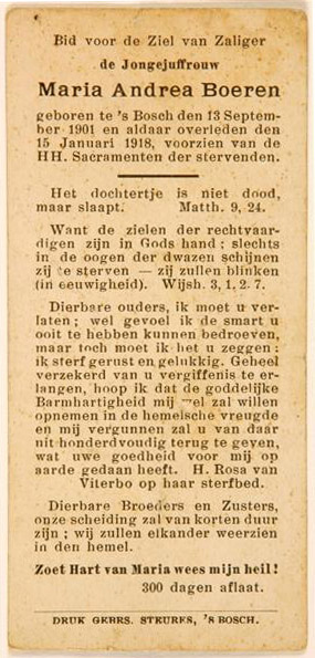 Doodsprent van Maria Andrea Boeren (1901-1918)