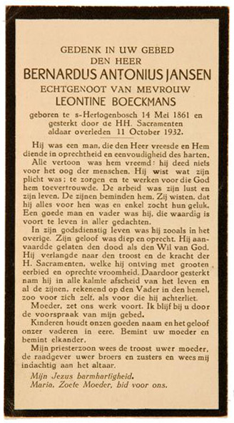 Doodsprent van Bernardus Antonius Jansen (1861-1932)