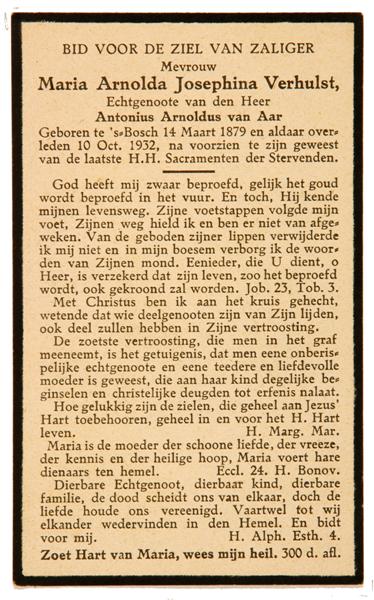 Doodsprent van Maria Arnolda Josephina Verhulst (1879-1932)