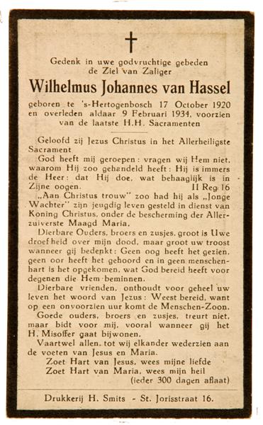 Doodsprent van Wilhelmus Johannes van Hassel (1920-1934)