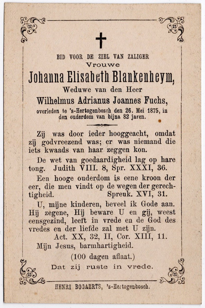 Weduwe van Wilhelmus Adrianus Joannes Fuchs