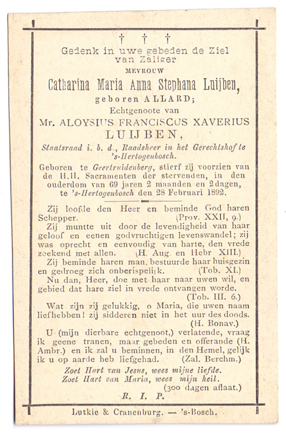 Geboren te Geertruidenberg, stierf zij voorzien van
