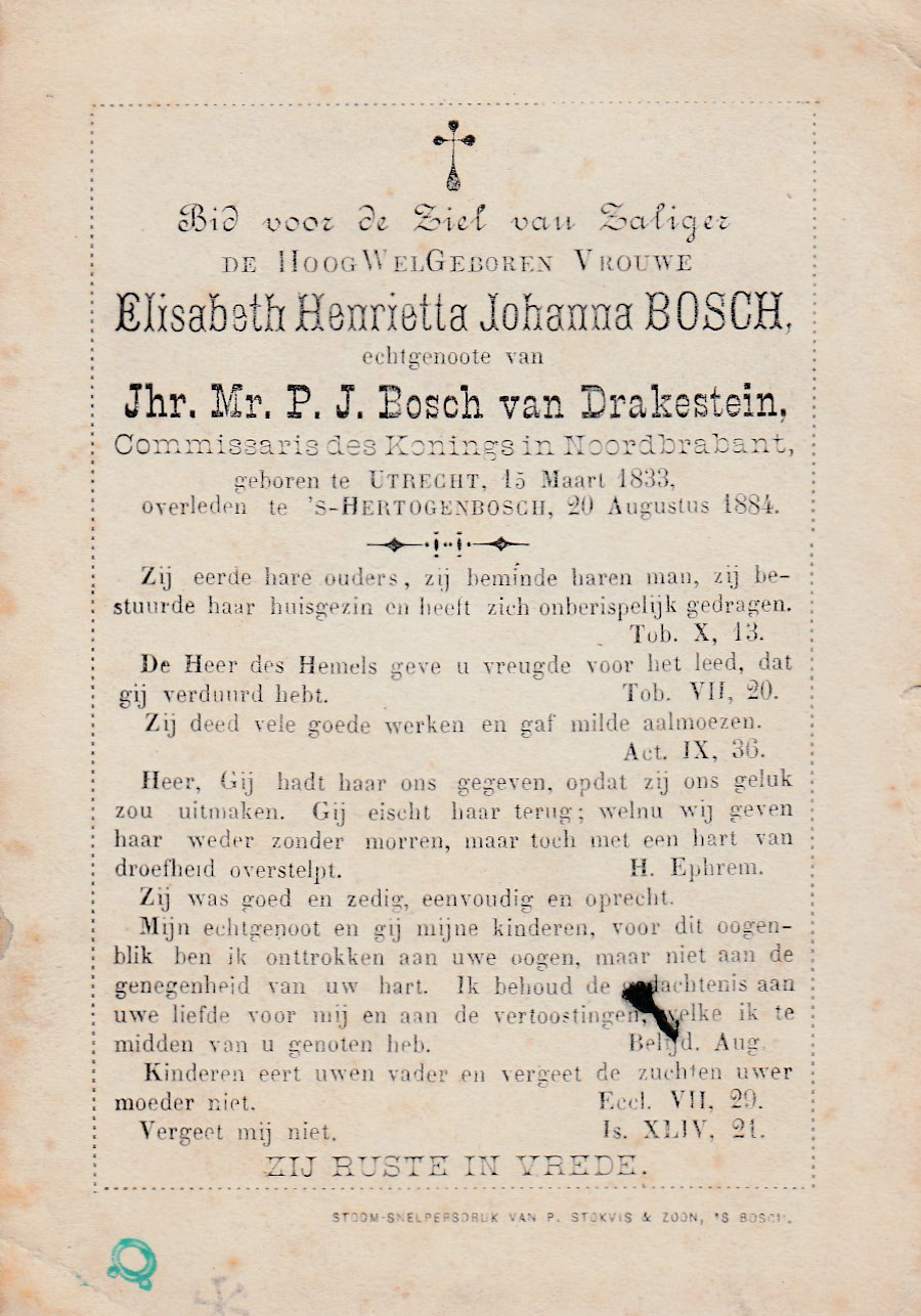 Echtgenoote van Jhr. Mr. P.J. Bosch van Drakestein