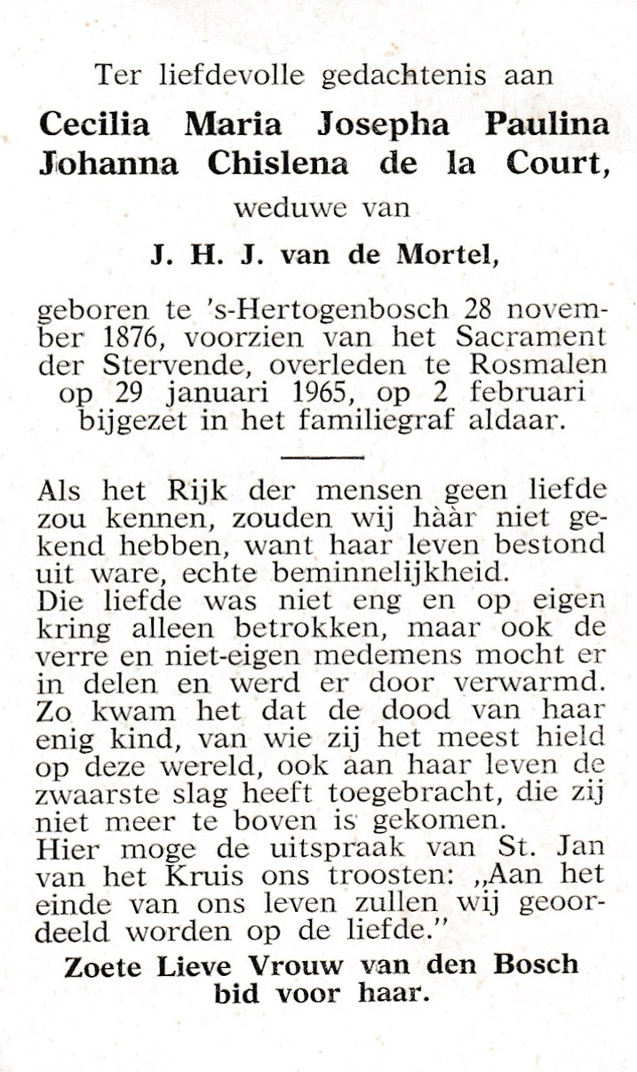 Bijgezet in het familiegraf te Rosmalen, 2 februari 1965