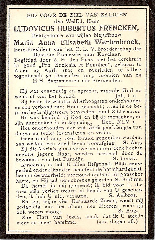 Eere-President van het O.L.V. Broederschap der Bossche Processie naar Kevelaar