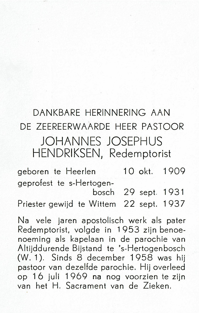 Kapelaan parochie Altijddurende Bijstand te 's-Hertogenbosch, 1953