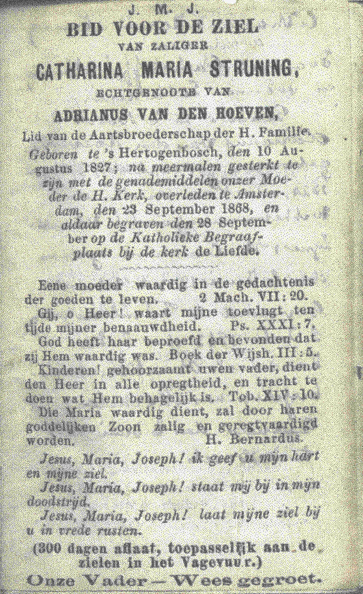 Begraven op R.K. Kerkhof De Liefde te Amsterdam op 28 september 1868