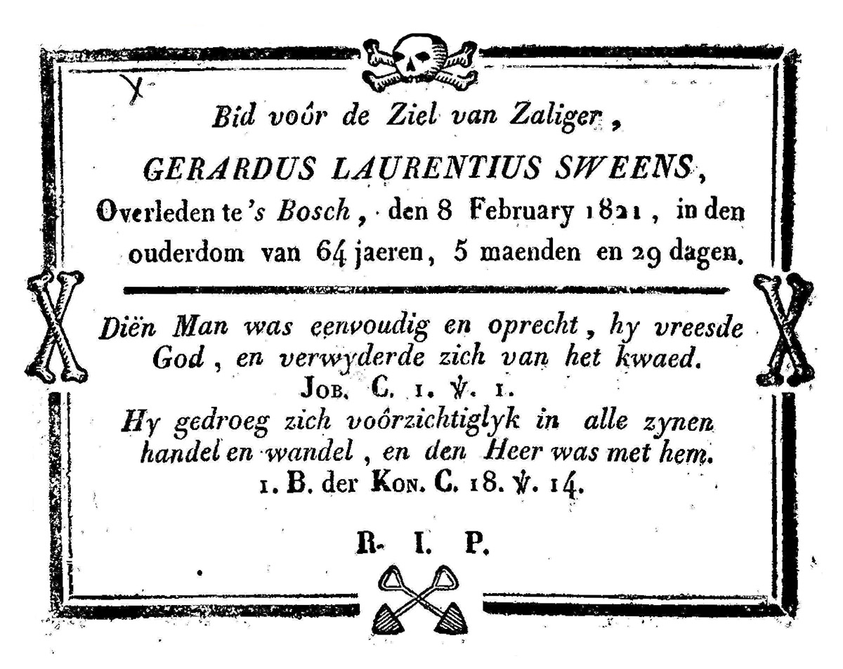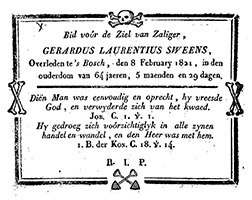 Bidprentje Gerardus Laurentius Sweens